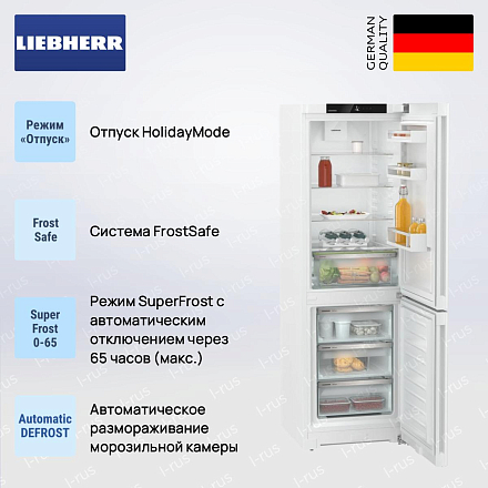 Холодильник Liebherr CNd 5203 отлично сохранит ваши продукты и впишется в интерьер любой кухни. В морозильную и холодильную камеры входит много продуктов для всей семьи. Два холодильных контура позволят точно настроить температуру в каждом отделении. Воздух и запахи от продуктов, которые находятся в разных отсеках, не будут перемешиваться. В модели много специальных функций, которые сделают пользование прибором еще удобнее. Например, вы сможете быстро охладить напитки в бутылках до необходимой температуры, или пользоваться энергосберегающим режимом, быстро замораживать продукты без потери их вкуса и витаминов.
