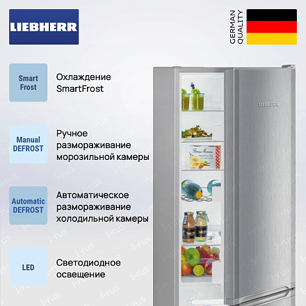 Холодильник Liebherr CUele 2831 — это отличное сочетание функциональности и элегантности. Произведенный в Болгарии, этот двухкамерный прибор с морозильником представляет собой пример высокого качества и надежности. Серебристый корпус из стали и двери, дизайн «SwingLine» и встроенные ручки делают его не только практичным, но и стильным дополнением к любой кухне.