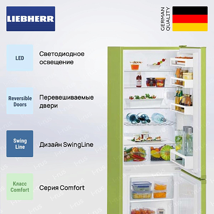 Холодильник Liebherr CUkw 2831 — это яркая, стильная и в то же время практичная двухкамерная модель, которая обеспечит высокий уровень хранения вашим продуктам. Она относится к дизайнерской линейке SwingLine, отличающейся минималистичным обликом входящих в нее изделий, четкими геометрическими формами и строгими прямыми линиями. Необычный оттенок зеленого KiwiGreen придает эксклюзивность внешнему облику, помогая создать необычный и эффектный интерьер кухни. При этом место расположения можно выбирать совершенно свободно, ведь дверцы можно перенавесить, а благодаря системе InteriorFit прибор можно устанавливать вплотную к стене.