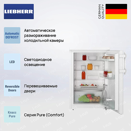 Холодильник Liebherr RE 1400 — это компактный однокамерный прибор без морозильной секции, который сочетает продуманный минимализм и практичность для кухни, офиса или небольшой гостевой зоны. Корпус и дверь выполнены из прочной стали белого цвета, что делает аппарат универсальным по стилю и простым в уходе; вертикальная ручка обеспечивает удобный захват, а возможность перевешивания дверцы и выдвижной дверной стопор DoorStop расширяют варианты установки и эксплуатации. Благодаря габаритам 85 х 55 х 60.7 см и опции встраивания под столешницу он вписывается в ограниченное пространство, при этом вентиляция через лицевую панель и регулируемые по высоте ножки спереди обеспечивают стабильную работу и удобство монтажа.