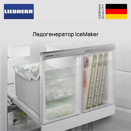 Важным преимуществом является наличие ледогенератора IceMaker с подключением к водопроводу, производительностью 1.4 кг/сут и максимальным запасом 2.7 кг. Это позволяет всегда иметь свежий лед для приготовления прохладительных напитков.