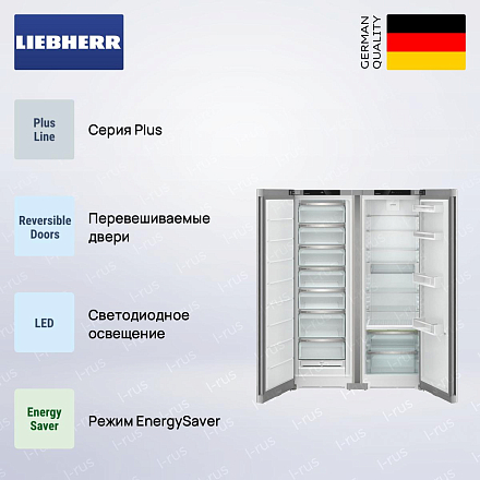 Холодильник Liebherr XRFsf 5225 (SFNsfe 5227 + SRBsfe 5220) — отдельностоящая двухдверная модель Side by Side. Входит в серию Plus, объединяющую технику с расширенным функционалом и оптимальным сочетание качества и цены. Габариты составляют 185.5 х 119.4 х 67.5 см, общий полезный объем — 660 л.