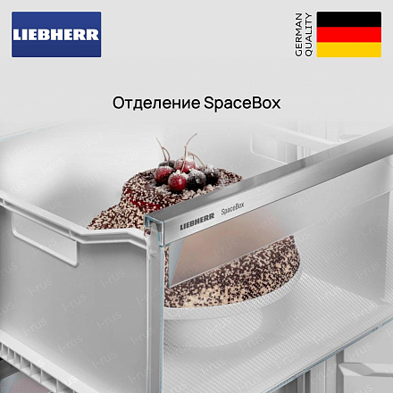 Система VarioSpace позволяет размещать в морозильнике габаритные упаковки, которые не помещаются в стандартный ящик. Такой подход стал возможен благодаря различным полками и выдвижными контейнерам, встречающимся в большинстве моделей от Либхер. Каждая составляющая может выдвигаться и перемещаться, что значительно упрощает хранение продуктов нестандартной формы. Особая отделка внутренних стенок камеры на даст содержимому примёрзнуть к поверхности.