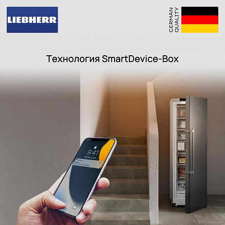 Технология SmartDevice-Box дает возможность управлять и мониторить работу морозильной камеры дистанционно через мобильное устройство. С помощью специального приложения, установленного на смартфоне или планшете, пользователь может контролировать температуру, устанавливать таймеры, получать уведомления о состоянии камеры и открытии дверцы. Технология реализована с помощью специального модуля, который устанавливается внутри морозилки. Можно запрограммировать определенные сценарии на конкретное время, например, автоматически активировать функцию суперзаморозки в тот день недели, когда вы обычно делаете покупки.