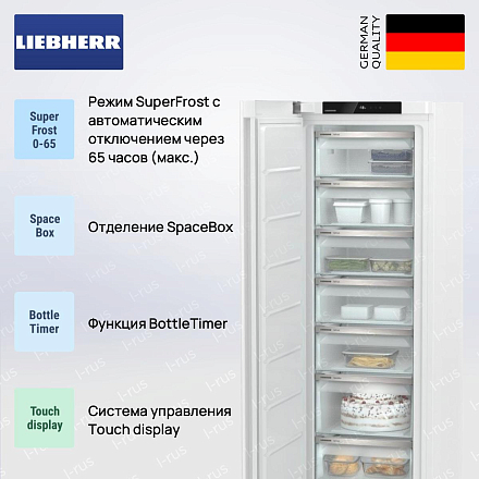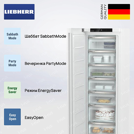 Морозильник Liebherr SFNe 5227— это модель из класса Pure, которая сочетает в себе современный элегантный дизайн и продвинутую функциональность. Основным цветом был выбран универсальный белый оттенок. Панель управления расположена над камерой и относится к типу Touch display, благодаря чему можно всего за несколько касаний изменять температуру и активировать встроенные режимы. Устройство оснащено системой EasyOpen и скрытой ручкой дверцы, что повышает комфорт использования. Его также можно установить вплотную к стенам благодаря конструкции InteriorFit.