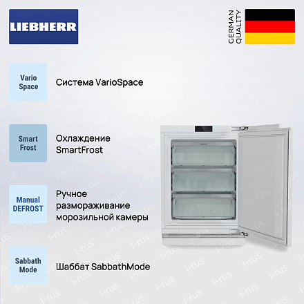 Система VarioSpace позволяет размещать в морозильнике габаритные упаковки, которые не помещаются в стандартный ящик. Такой подход стал возможен благодаря различным полками и выдвижными контейнерам, встречающимся в большинстве моделей от Либхер. Каждая составляющая может выдвигаться и перемещаться, что значительно упрощает хранение продуктов нестандартной формы. Особая отделка внутренних стенок камеры на даст содержимому примёрзнуть к поверхности.
