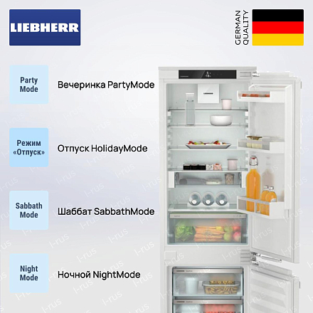 Система хранения встраиваемого холодильнике Либхер ICd 5123 предоставляет оптимальные возможности для организации продуктов. Регулируемые полки позволяют легко адаптировать пространство под ваши потребности, также в комплекте идут отделение для бутылок и подставка для яиц. Зона свежести EasyFresh помогает продлевать срок годности овощей и фруктов. Функция SuperCool обеспечивает быстрое охлаждение продуктов, а режимы Шаббат и Отпуск дают возможность корректно приостановить работу устройства на определенный промежуток времени. Если же вам нужно быстро охладить бутылки перед сервировкой, то на помощь придет BottleTimer.