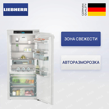 Холодильник Liebherr IRBd 4150 Prime — встраиваемая модель высотой 122 см с зоной свежести BioFresh и сенсорным управлением.