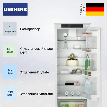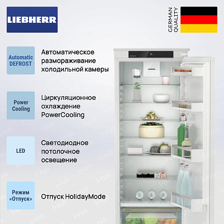 Холодильник Liebherr IRBSe 5120 Plus — встраиваемая модель с зоной свежести BioFresh и сенсорным управлением. Особенность — скользящее крепление двери.