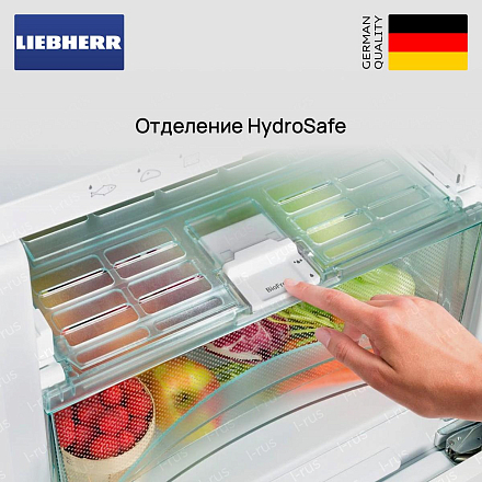 Отделение HydroSafe встречается в инновационных контейнерах зоны свежести BioFresh. Оно сохраняет воздух внутри более влажным, чем есть в основном отделении, за что и получил свой название (hydro с англ. «влажный»). В такие ящики, как правило, размещают овощи и фрукты, которые при таких условиях продолжают «жить», соответственно, сохраняют цвет, структуру и вкус. Такой идеальный микроклимат гарантирует, что растительная пища дольше будет оставаться свежей.