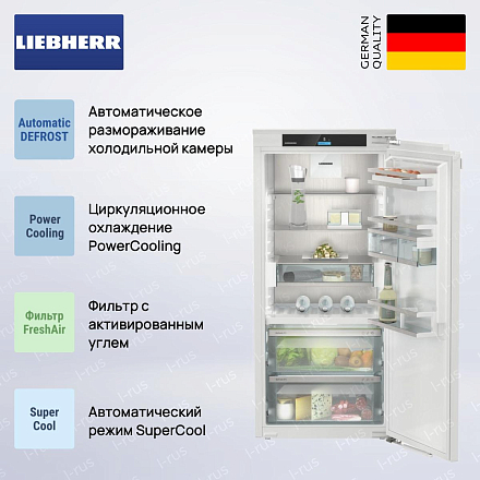 Холодильник Liebherr IRBd 4150 Prime — встраиваемая модель высотой 122 см с зоной свежести BioFresh и сенсорным управлением.