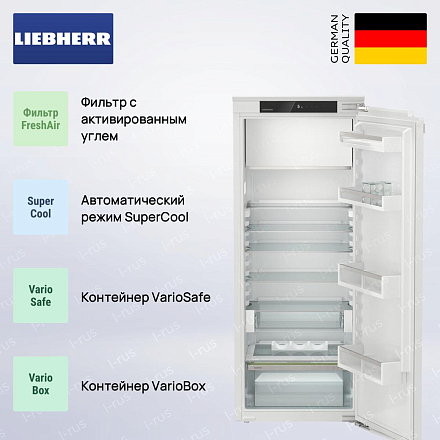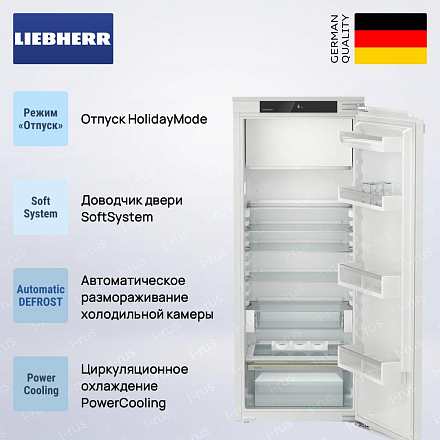 Встраиваемый холодильник Liebherr IRD 4521 отличается современным дизайном, продуманной эргономикой и функциональностью. Стальной корпус холодильника обеспечивает его долговечность и надежность. Внешний вид устройства подчеркивает его статус и вписывается в любой интерьер. При этом внутренний объем холодильной камеры составляет 228 литров, из которых 212 литров полезного объема. Это позволяет хранить большое количество продуктов, не заботясь о нехватке места. Управление холодильником осуществляется с помощью сенсорных кнопок и Touch дисплея. Это не только удобно, но и добавляет устройству современности. Индикация температуры холодильной камеры поможет контролировать оптимальные условия для сохранения свежести продуктов.