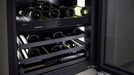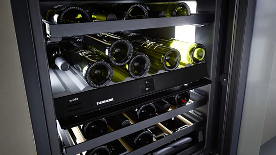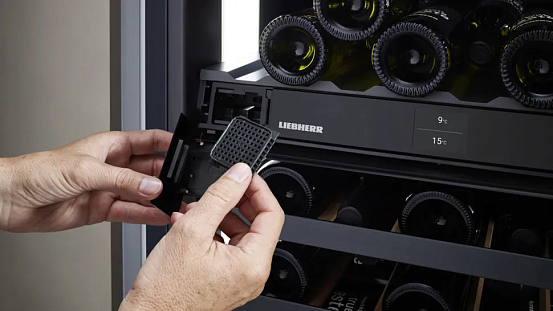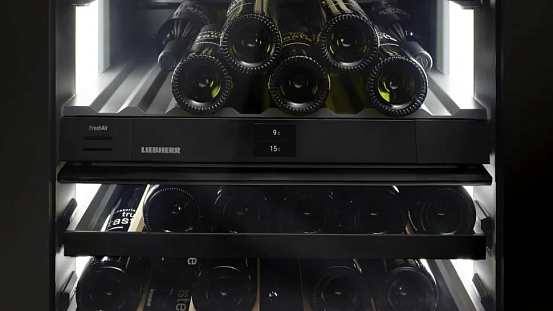 Вино требует спокойствия и стабильности для правильного хранения. В климатических винных шкафах Liebherr используются сверхтихие компрессоры , созданные по фирменным технологиям, а также деревянные полки из натурального бука , обеспечивающие устойчивость и гашение вибраций. Благодаря этим решениям ваше вино дозревает в условиях максимальной тишины и стабильности , необходимой для сохранения его вкуса и аромата.